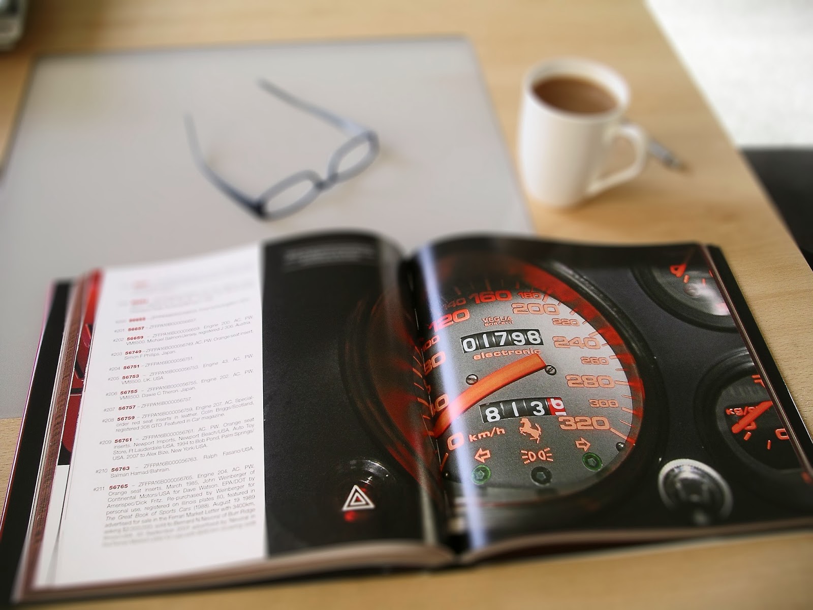 The work features nearly 400 relevant photographs, from original production images to the cars as they are today, including the 1984 Geneva Salon where the car debuted, the first ever GTO Reunion in 1985, current salon and action images, right up to the 25th Anniversary Ferrari 288 GTO Reunion held in America in 2009. Also featured are the actual factory production approval sheets, as filed with the Italian government, in an illustrated technical drawing form, along with a chassis by chassis register of every 288 GTO built, including destroyed prototypes, production cars, and GTO Evoluziones – in fact all 284 cars ever built.
